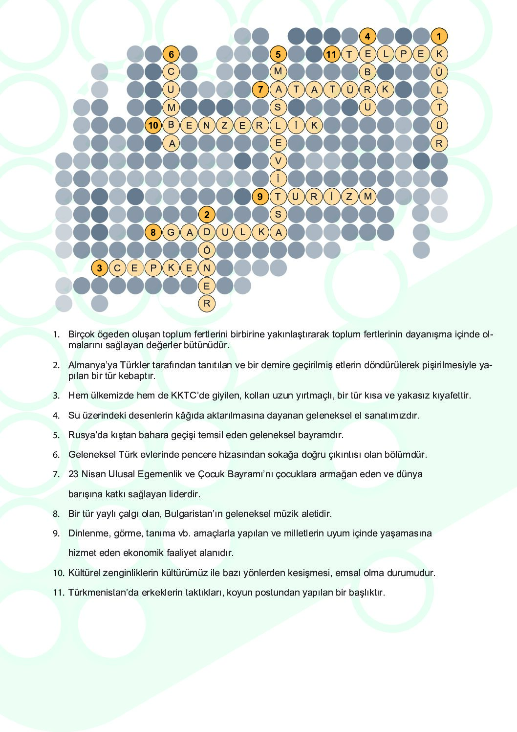 1. Öğrenme Alanı Bulmaca Cevapları Sayfa 30