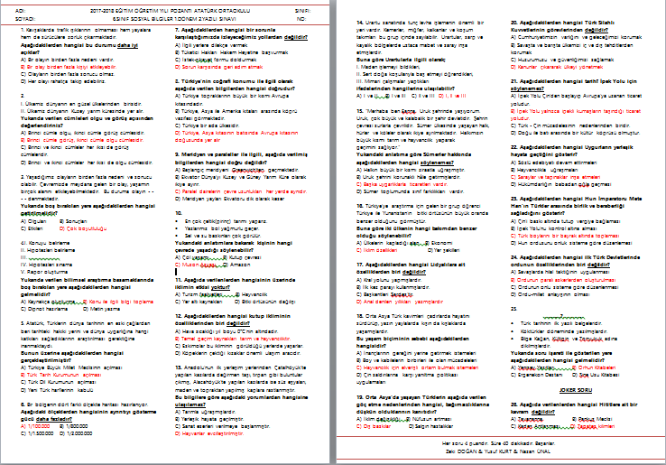 2017-2018 Sosyal Bilgiler 6 1.Dönem 2.Yazılı Sınavı