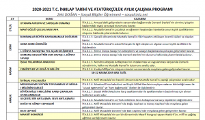 2020-2021 T.C. İnkılap Tarihi Aylık Çalışma Programı