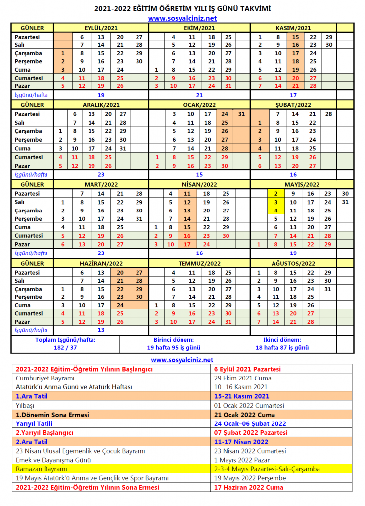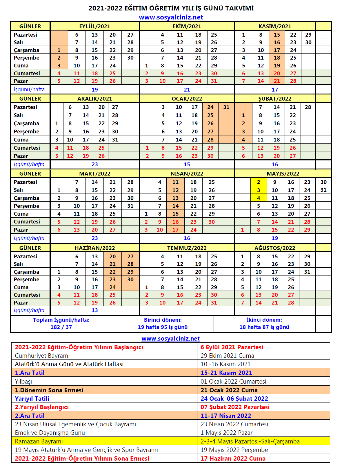 Hocam ben bu takvimi, MEB’in gazetelerdeki 13 Eylül açıklamasın agöre hazırladım, ancak Ağustos başında MEB 6 Eylül dedi… Durum netleşsin, takvimi güncelleyeceğim…