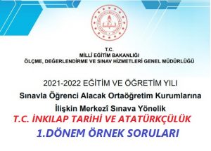 2021-2022 T.C.İnkılap Tarihi 1.Dönem Örnek Soruları