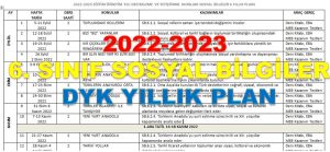 2022-2023 6. Sınıf Sosyal Bilgiler DYK Yıllık Planı