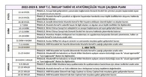 2022-2023 T. C. İnkılap Tarihi Yıllık Çalışma Planı