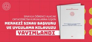 2021-2022 eğitim öğretim yılı sonunda Sınavla Öğrenci Alacak Ortaöğretim Kurumlarına İlişkin Merkezî Sınav Başvuru ve Uygulama Kılavuzu, “www.meb.gov.tr” internet adresinden açıklandı.