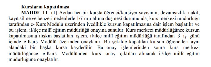 Buna göre açılan daha önce Destkleme ve Yetiştirme Kurslarında öğrenci sayısı 10’un altına düştüğünde kurslar kapanıyordu. Yeni düzenleme ile bu sayı 16 oldu.