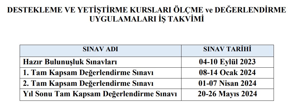 2023-2024 Destekleme ve Yetiştirme Kurs Takvimi ve Değişiklikler