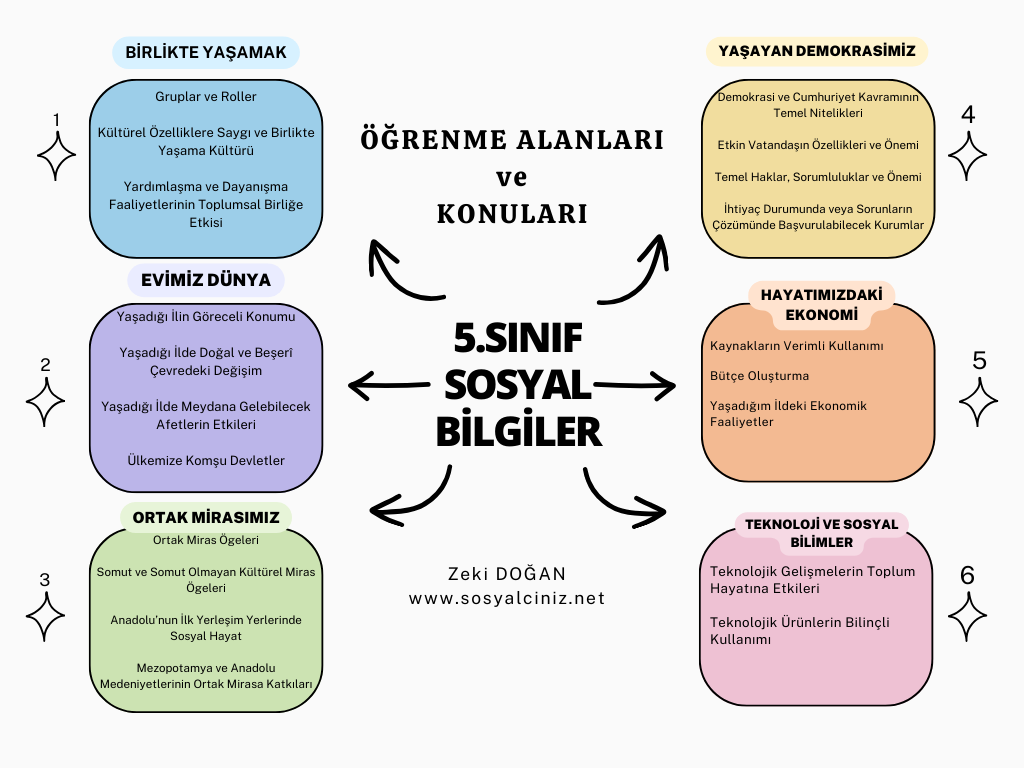 Anasayfa » 5. Sınıf 1. Öğrenme Alanı Birlikte Yaşamak » 2024-2025 5. Sınıf Sosyal Bilgiler Öğrenme Alanları ve Konuları