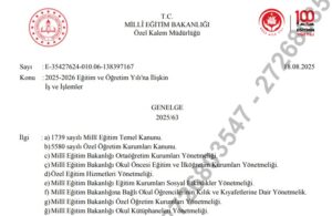 “2025-2026 Eğitim ve Öğretim Yılına İlişkin İş ve İşlemler” konulu genelgeye ulaşmak için TIKLAYINIZ.