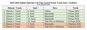 2025-2026 II.Dönem Türkiye Geneli Ortak Sınav Tarihleri