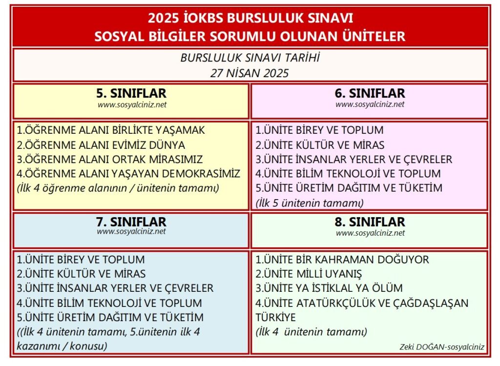 2025 Bursluluk Sınavı Sosyal Bilgiler 5-6-7-8 Konuları