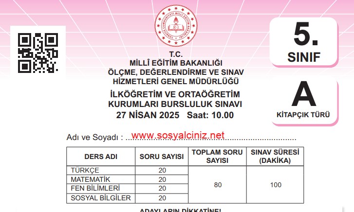2025 BURSLULUK SINAVI SORULARI SOSYAL BİLGİLER 5-6-7 İNKILAP TARİHİ 8