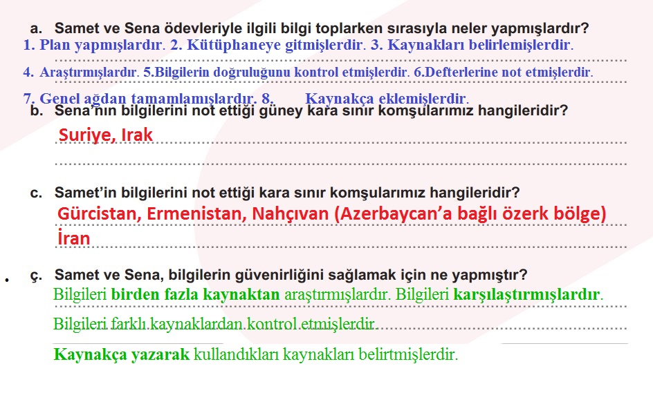 5.Sınıf Sosyal Bilgiler 2.Öğrenme Alanı Örnek Sorular Cevapları