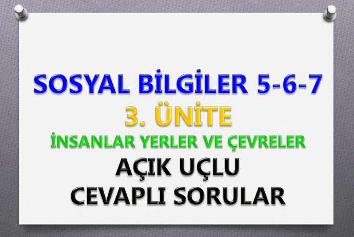 5. Sınıf Sosyal Bilgiler 3. Ünite Açık Uçlu Cevaplı Sorular PDF İÇİN TIKLAYINIZ.