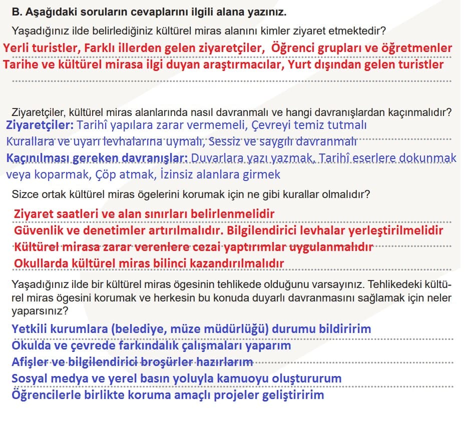 5.Sınıf Sosyal Bilgiler Ders Kitabı Sayfa 109’da yer alan Değerlendirelim etkinlik cevaplarıdır.