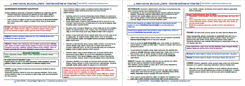 5.Ünite Üretim, Dağıtım ve Tüketim Ders Notu