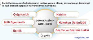 6.Sınıf Sosyal Bilgiler 2.Kitap Sayfa 12’de yer alan Demokrasinin Nitelikleri etkinliğidir…