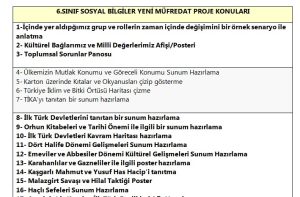 6. SINIF SOSYAL BİLGİLER YENİ MÜFREDAT PROJE KONULARI
