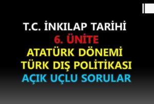 6. Ünite Atatürk Dönemi Türk Dış Politikası Açık Uçlu Sorular PDF İÇİN TIKLAYINIZ.