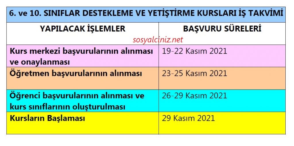 • 6. ve 10. sınıflar için Destekleme ve Yetiştirme Kursları, 29 Kasım’da başlayacak.