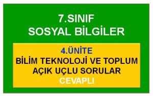 7. Sınıf Sosyal Bilgiler 4. Ünite Bilim Teknoloji ve Toplum ile ilgili 57 sorudan oluşan açık uçlu soru çalışmasıdır…