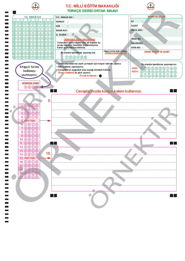 Öğrenci cevapları değerlendirilirken yazı güzelliği, harf eksikliği, imlâ veya noktalama yanlışlıkları göz önünde bulundurulmayacaktır. Ancak Türkçe dersinde doğrudan imlâ/noktalama sorusu soruluyor veya kelime/kavram farklılığı oluşuyor ise ayrı bir değerlendirme söz konusu olacaktır.