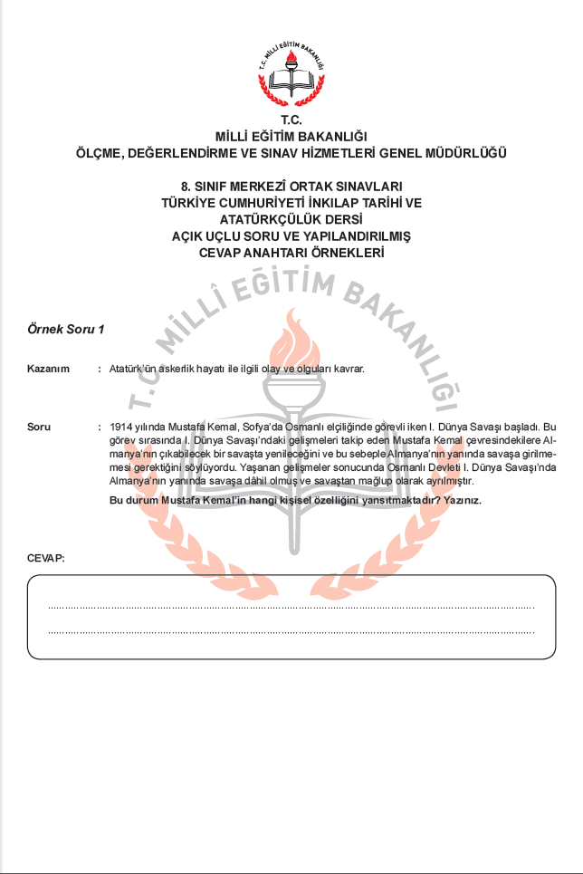 T.C.İNKILAP TARİHİ AÇIK SORU ÖRNEKLERİ