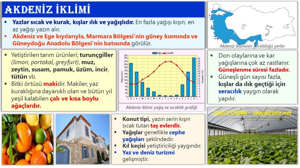 • Yazlar sıcak ve kurak, kışlar ılık ve yağışlıdır.