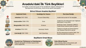 Anadolu’da Kurulan İlk Türk Beylikleri olan Saltuklular, Danişmentliler, Mengücekliler, Artuklular, Çaka Beyliği ile ilgili infografiktir.