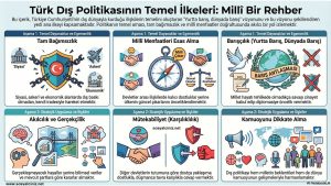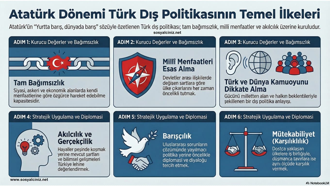 Atatürk Dönemi Türk Dış Politikasının Temel İlkelerini gösteren infografik çalışmadır…