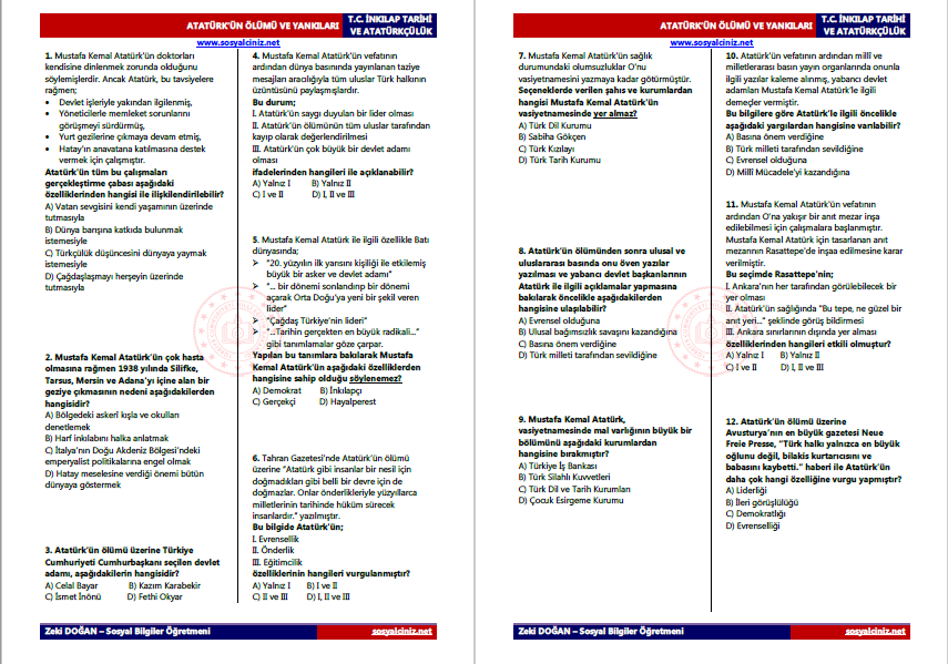 Atatürk’ün Ölümü ve Yankıları Test İNDİR