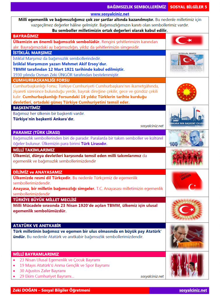 Bağımsızlık Sembollerimiz-Tablo