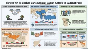 1934 yılında imzalanan Balkan Antantı ve 1937 yılında imzalanan Sadabat Paktını gösteren infografik çalılmadır…