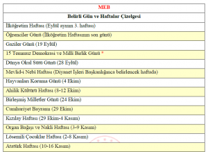 Belirli Günler ve Haftalar Çizelgesi (MEB)