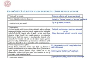 Bursluluk Sınavı EK 1 Belgesi Nasıl Doldurulur Örnek
