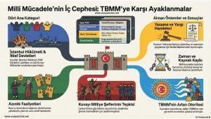 Türkiye Büyük Millet Meclisine karşı ayaklanmalar, ayaklanmaların nedenleri, İstanbul Hükümeti ve İtilaf Devletlerinin çıkardığı ayaklanmalar, azınlıkların ve Kuvayı Milliyecilerin çıkardığı ayaklanmalar, ayaklanmaların sonuçları ile ilgili infgoraik çalışmasıdır…