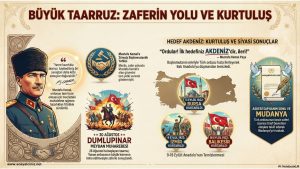 Mudanya Ateşkes Antlaşması ve Önemi Büyük Taarruzun ardından imzalanan Mudanya Ateşkes Antlaşmasının önemini ve sonuçlarını gösteren infografik çalışmasıdır…