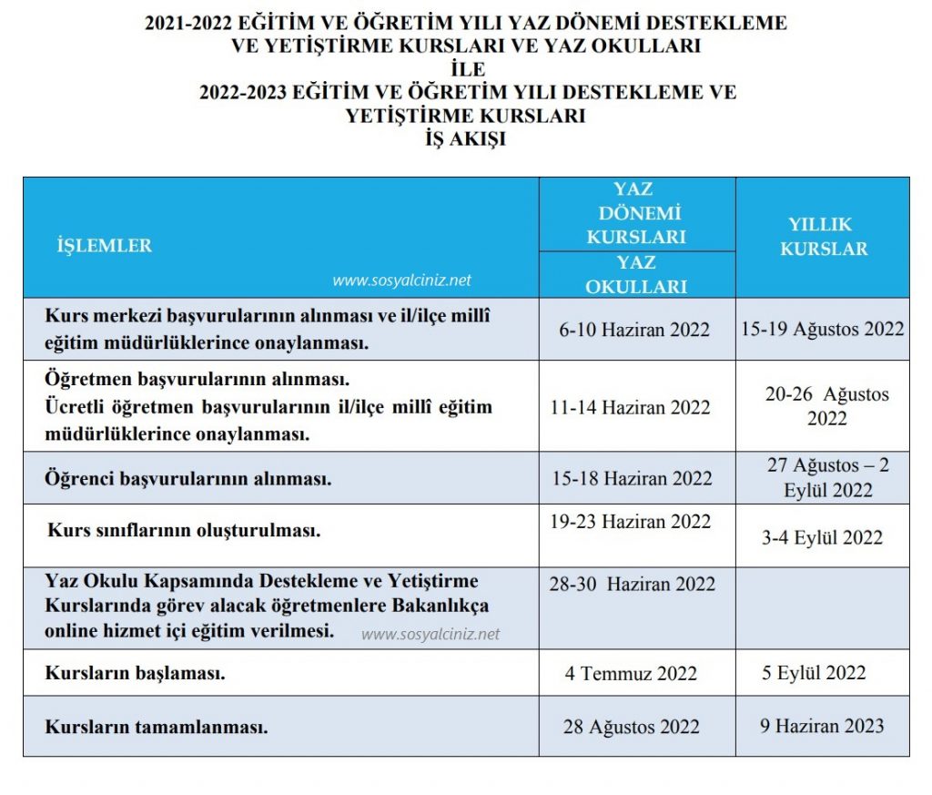 Destekleme ve Yetiştirme Kursları Yönergesi ve Kurs Takvimi