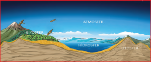 Biyosfer (Canlı Küre): Litosfer, atmosfer ve hidrosferdeki canlı yaşam alanlarıdır.