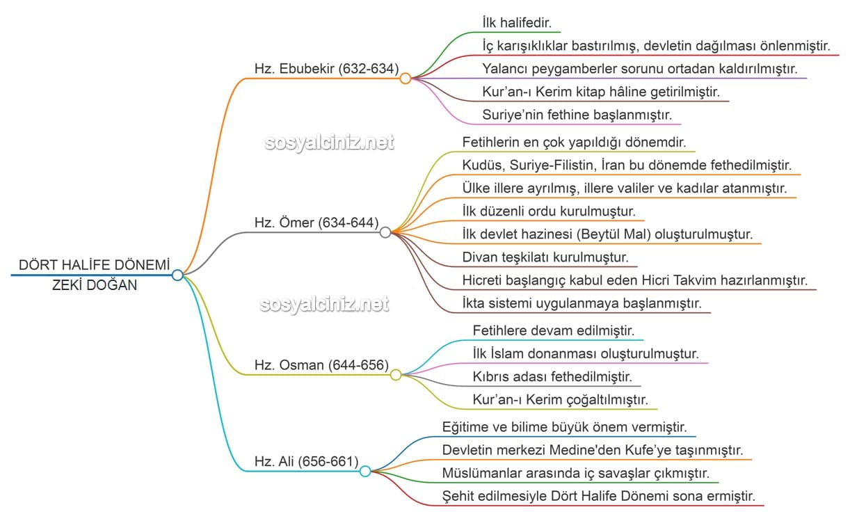 Dört Halife Dönemi konusunu kavratmak için hazırlanmış zihin haritasıdır…