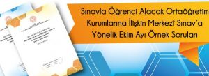 2022-2023 eğitim öğretim yılında sınavla öğrenci alacak ortaöğretim kurumlarına yönelik yapılacak merkezî sınava ilişkin Ekim ayı örnek soruları öğrencilerin erişimine açıldı. Örnek soru kitapçığında daha önceki yayınlarda olduğu gibi Türkçe, matematik, fen bilimleri alanlarından 10’ar soru; T.C. inkılap tarihi ve Atatürkçülük, din kültürü ve ahlak bilgisi ile İngilizce alanlarından ise 5’er soru olmak üzere toplam 45 soru yer alıyor.