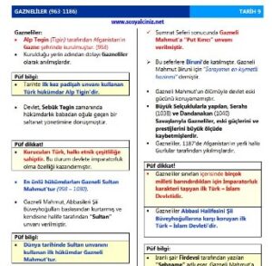 • Büyük Selçuklularla yapılan, Serahs (1038) ve Dandanakan (1040) Savaşlarıyla Gazneliler, eski güçlerini ve prestijlerini büyük ölçüde kaybetmişlerdir.