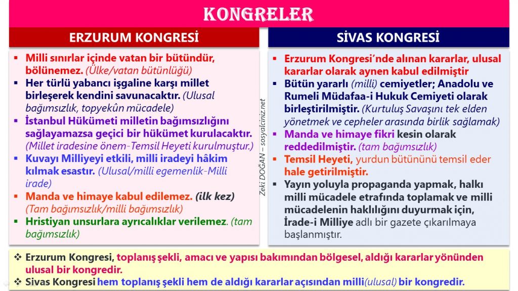 Sivas Kongresi hem toplanış şekli hem de aldığı kararlar açısından milli(ulusal) bir kongredir.
