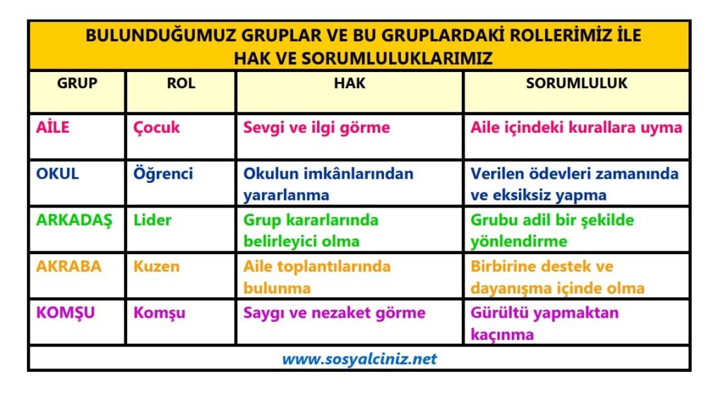 İçinde Bulunduğumuz Gruplar, Roller, Hak ve Sorumluluklar
