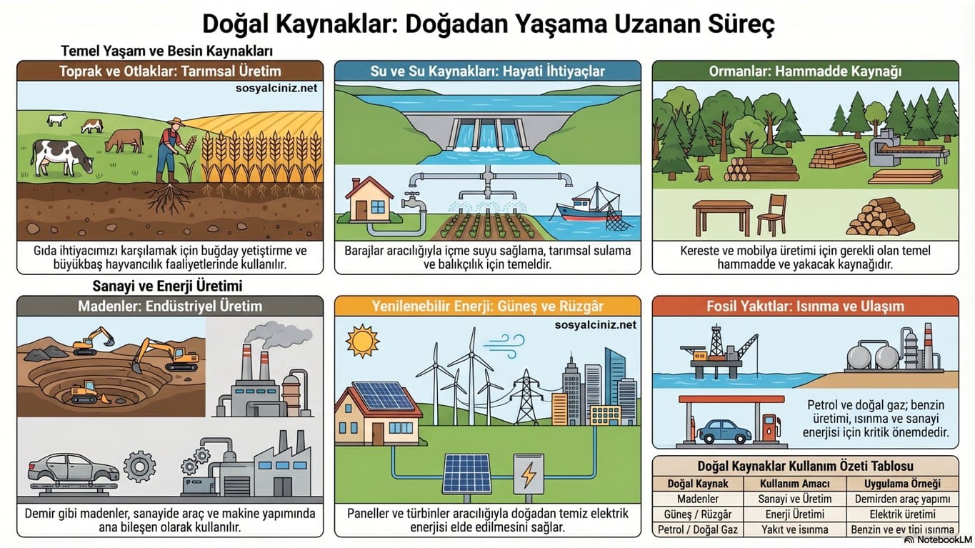 5.Sınıf Sosyal Bilgiler 5.Öğrenme Alanı Hayatımızdaki Ekonomi Kaynaklarımızın Verimli Kullanımı Hangi Doğal Kaynak Hangi Alanda Kullanılır? infografik çalışma…