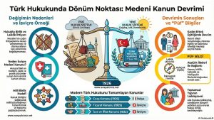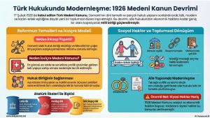 Hukuk alanında yapılan inkılapları ve Türk Medeni Kanununu gösteren infografik çalışmasıdır…
