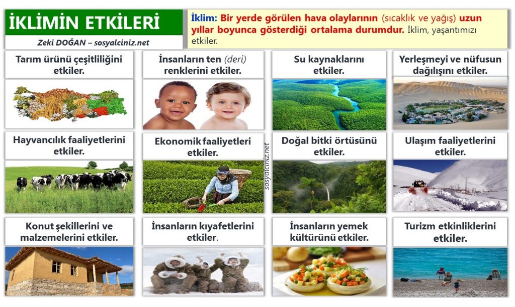 İklim, yaşantımızı belirleyen önemli bir etkendir. Çünkü iklim;