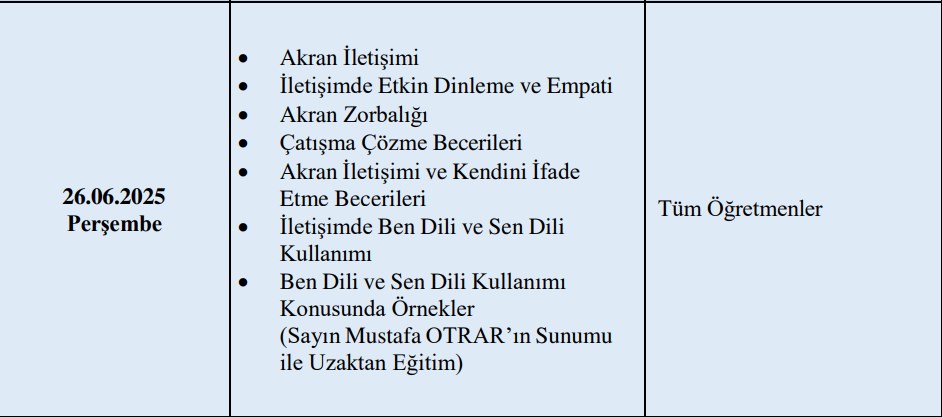 KASIM 2025 MESLEKİ GELİŞİM PROGRAMI Bakanlığımıza bağlı tüm okullardaki yönetici ve öğretmenler, Kasım 2025 Mesleki Çalışmalar Seminerini 10-16 Kasım’da ÖBA...