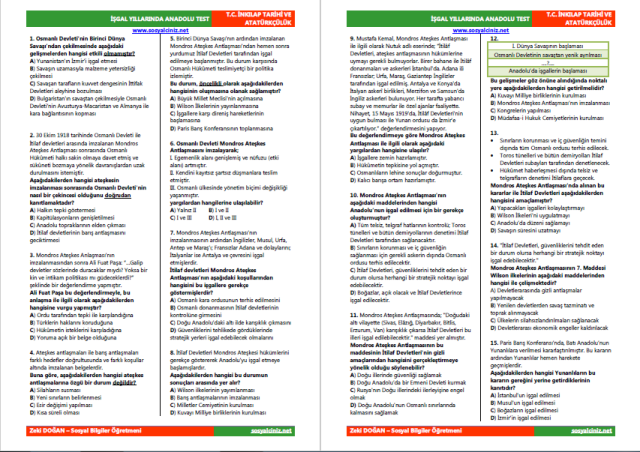 T.C. İnkılap Tarihi LGS Deneme Testi 11 Sevr Antlaşması dahil 15 soruluk LGS Deneme Sınavı… T.C. İNKILAP TARİHİ LGS DENEME...