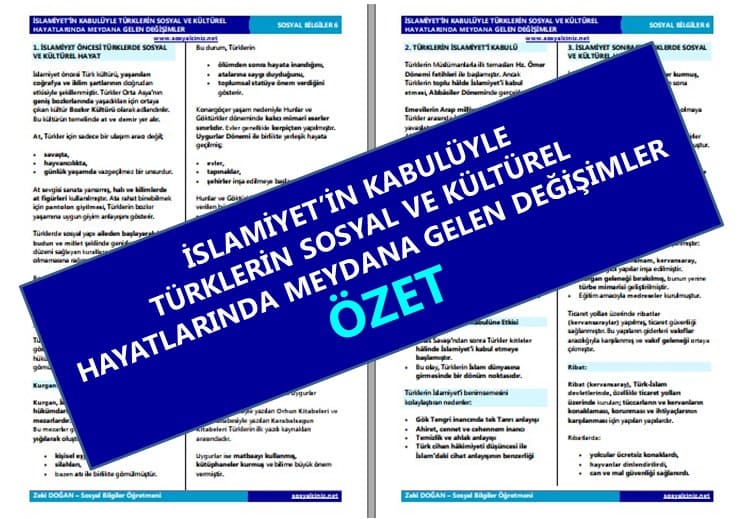 Anasayfa » 6. Sınıf 3. Öğrenme Alanı Ortak Mirasımız » İslamiyet’in Kabulüyle Türklerin Sosyal ve Kültürel Hayatlarında Meydana Gelen Değişimler