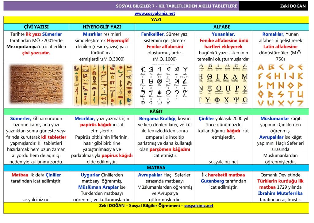 Kil Tabletlerden Akıllı Tabletlere Tablo